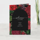 A beautiful design showcasing burgundy red vintage dark florals on a black background and a black arch. Perfect for anyone who loves moody vintage flower designs and dark colour tones. An elegant black and red maroon retro floral design. A wildflower and roses wedding order of service design with modern elements. Matching wedding invitations and other stationery items are also available.