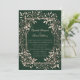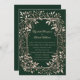 These magical forest wedding invitations are perfect for those dreaming of an enchanted forest celebration, featuring a rich forest emerald green background with an intricate, elegant botanical frame with vintage influences that captures the essence of a fairy tale wedding. These moody, dark forest invites blend deep greens with a delicate eggshell white, creating a whimsical yet mysterious atmosphere. Ideal for gothic, forest-themed, or fantasy weddings, each enchanted invitation evokes the allure of a dark forest wedding, with mystical woodland elements, ensuring your special day is unforgettable from the moment your guests receive their invite.