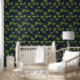 Beautiful Gingko Navy Blue Floral Pattern Wallpaper, this design is an original piece. This moody floral wallpaper design will absolutely take your home decor to the next level. Buy Today!