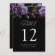 Elegant, moody floral wedding table number cards featuring a top border of purple and burgundy flowers with lush green leaves complimented by modern typography. To order the table cards: add your name, wedding date, and table number. Add each number to your cart individually and check out when you're finished. Designed to coordinate with our Moody Gothic Floral wedding collection.