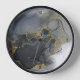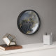 This flowing, alcohol ink abstract design sets the perfect tone for a modern apartment or home office. In shades from charcoal to black, accented with glittering gold, the wall clock design is shown here framed in black. Search ID988 to see other products with this eye-catching design.