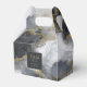 Your dreams are finally coming true and this flowing, alcohol ink abstract design sets the perfect tone for the fabulous wedding you always imagined. In shades from charcoal to black, accented with glittering gold, the gable-style favour box shown here provides a template to easily add your initials, wedding date and thank you message. Search ID988 to see other pieces in this coordinated wedding set.