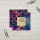Moody Luxe Marble | Deep Purple and Teal Monogram Square Business Card