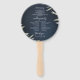 Modern chic minimal watercolor botanical foliage greenery design on moody navy blue background, simple and elegant with calligraphy names, great round wedding program fans for modern wedding, rustic wedding, and botanical garden wedding in summer and fall at night.