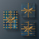 Set of three different different moody deep navy blue seamless patterns. each item has a unique print with faux gold / bronze metallic foil