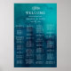 This moody ocean watercolor alphabetical seating chart is perfect for your simple tropical boho wedding. It is designed with minimalist white tropical leaves and a stunning dark blue-green background.