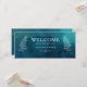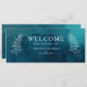 This moody ocean watercolor hanging seating chart header is perfect for your simple tropical boho wedding. It is designed with minimalist white tropical leaves and a stunning dark blue-green background.