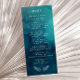 This moody ocean watercolor wedding dinner menu is perfect for your simple tropical boho wedding. It is designed with minimalist white tropical leaves and a stunning dark blue-green background.