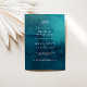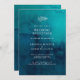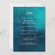 This moody ocean watercolor wedding reception invitation is perfect for your simple tropical boho reception. It is designed with minimalist white tropical leaves and a stunning dark blue-green background.