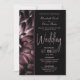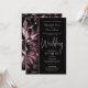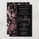An elegant moody black and pink floral wedding invitation designed to suit couples who are planning to exchange vows in one location and celebrate with dinner, dancing, and toasts with friends and loved ones at another.