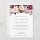 Moody floral wedding invitation featuring a top border with watercolor painted figs, berries and roses in plum and pink. The backside is a deep plum colour and may be changed to any colour you wish. The deep shades of purple make this invitation great for a wedding in the fall.