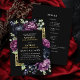 Set the stage for a hauntingly elegant event with this gothic all-in-one invitation. A lush and luxurious floral wedding invitation featuring a frame of black and purple peonies and blue berries against a black background. The back of the invites features the wedding details. It is perfect for a dramatic and unforgettable celebration. They are ideal for lovers of dark romance and timeless allure.