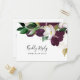 This moody purple blooms song request RSVP postcard is perfect for a modern wedding. The elegant floral design features dark plum purple and white tulip flowers with emerald green leaves and gold leaf accents. Build your wedding guest list and your dance floor song list all at once! This wedding response postcard conveniently asks guests if they will be able to attend your wedding, and also what song will get them to dance.