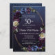 Sophisticated and moody dark purple roses and wildflowers create a chic floral design. Pops of white and blue add visual interest and depth. Berries and fruit add to the sultry design. Together, they decorate an elegant multi-strand oval gold frame. The invitation back has a subtle geometric vintage pattern. This 50th birthday invitation is part of the Moody Purple Floral collection. It contains templates you can use to create a unique invitation suite, as well templates for welcome signs, party supplies and decorations.