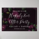 This moody purple pattern happily ever after party poster is perfect for a modern wedding after party. The elegant floral design features dark plum purple tulip flowers with emerald green leaves. Customise the sign with the name of the bride and groom, and the date of the wedding.