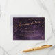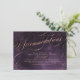 Romantic handwriting calligraphy script in faux rose gold colour on moody deep purple watercolor background, elegant and sophisticated, great wedding accommodations cards for vintage wedding, fall or winter weddings and evening wedding.