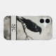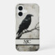 Set the tone for a mysterious dark academia aesthetic with this personalised monogram phone case. It features a detailed black crow illustration perched on a rustic branch, rendered in a striking monochrome palette with vintage ink textures. This is the perfect way to elevate your everyday tech or a thoughtful gift for a gothic art lover.