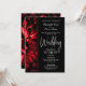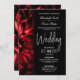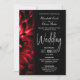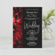 An elegant moody black and red floral wedding invitation designed to suit couples who are planning to exchange vows in one location and celebrate with dinner, dancing, and toasts with friends and loved ones at another.