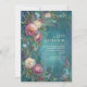 Set an enchanting tone for your celebration with this masterpiece of moody botanical artistry. The composition showcases vibrant magenta peony bloom clusters and creamy ivory rose blossom petals, intertwined with delicate blue wildflower spray motifs and elegant gold swirling vine accents. All these organic elements are set against a rich, deeply textured teal watercolor background that features a dreamy, impressionistic vibe with subtle hints of plum and violet. This wedding invitation is a premier choice for a moody winter celebration, a whimsical spring garden gala, or an artistic forest ceremony. It ensures your event details are framed with a sense of high-end drama and natural grace from the moment the envelope is opened.