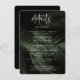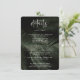 Moody Tropics, wedding details card. Dark tropical palm frond photography. Features, white bold and edgy typography. Black backing colour.