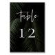 Moody Tropics, wedding table number card. Dark tropical palm fronds photography background with edgy white typography. Table cards must be numbered and ordered individually.