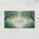 Evoke a sense of mystery and moody elegance with this atmospheric winter forest business card. The design features two magnificent, gnarled trees with intricate, bare branches that create a dramatic natural frame around a central textured background. Rendered in a sophisticated, muted colour palette of sage green, deep teal, and grey, the painterly style gives the scene a hauntingly beautiful and artistic quality. A delicate, thin gold line borders the entire card, adding a final touch of understated luxury.