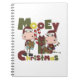Two cows in red stocking caps, Christmas gifts, holiday lights, candy canes, and text that reads "Mooey Christmas" on holiday T-shirts, mugs, cards, stickers, tote bags, wall clocks, keepsake boxes, ornaments, keychains, and other cute cow theme holiday apparel and gifts.