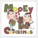 Two cows in red stocking caps, Christmas gifts, holiday lights, candy canes, and text that reads "Mooey Christmas" on holiday T-shirts, mugs, cards, stickers, tote bags, wall clocks, keepsake boxes, ornaments, keychains, and other cute cow theme holiday apparel and gifts.