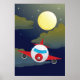 An aeroplane flaying away from a large moon. This design looks really effective on these Poster