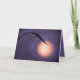 This Halloween card features an abstract glowing pink and pale yellow moon on a light purple textured background with a single strand of grass curving in front. The text reads: Beware the moon! It can be customised to suit your needs.