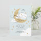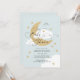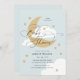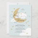 Moon and Stars Blue Elegant Script Baby Shower Invitation