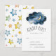 These Moon and Stars Boy Baby Shower RSVP are perfect for a simple baby shower. The modern whimsical design showcases a navy-blue watercolor cloud shape adorned with a yellow crescent moon and scattered stars.
