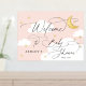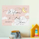 Moon and Stars Clouds Pink Welcome Baby Shower Foil Prints