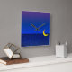 A vintage art etching of a starry night with a glowing crescent moon against a background of blues and violets. Click Customise It to add your name or message.