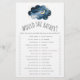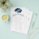 These Moon and Stars Would She Rather Trivia Game Flyer are perfect for a simple baby shower. The modern whimsical design showcases a navy-blue watercolor cloud shape adorned with a yellow crescent moon and scattered stars.