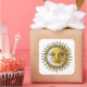 celestial , modern , vintage celestial ,face sketch, crescent moon with face , sun , vintage , vintage sun illustration