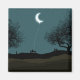 This design features a charming illustration of a crescent moon being held on a string, as though it were a balloon. A girl is sat on a park bench holding the string.