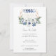 This Boho wedding invitation set features watercolor crescent and full moon phases with white and blue flowers,