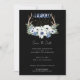This Boho wedding invitation set features watercolor crescent and full moon phases with white and blue flowers,