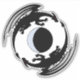 Two flying black dragons circle a crescent moon in this fantasy design by Richard H. Fay.