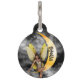 I looked through a lot of pet stores and web sites then I saw Zazzle and a tag with guitars in the background so we added his name and photo o nether front and our phone numbers on the back. It was beautiful and unique just perfect