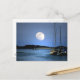 The moon goes up in the quiet harbour with docked sailboats. A peaceful night scene.