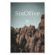 Design features fading moon in blue green sky over the bare rocks at Sylvan Lake in South Dakota with Six O Five written above them in a bold white text. Original art by Featherfall Studio.