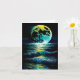 The stunning image on this greeting card captures the beauty and majesty of the moon as it hangs low over the calm waters of the beach.