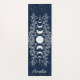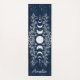 Double sided Moon Phase Celestial Stars Lotus Line Drawing Yoga Mat on a navy blue background with gold stars. Perfect for exercise, pilates, meditation, or your yoga practice. Makes an excellent gift for a yoga instructor. Magical celestial design. Easily personalise with your own text or name. Font colour and style can be changed in the design tool.
