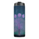 An attractive celestial design features a circular illustration of the phases of the moon and tree of life on a background of a starry, galactic blue sky.