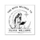 Enchant your book collection with this magical rubber stamp featuring a graceful moon princess seated in a crescent moon, reading a book under a sparkling starry sky. Curved text above reads “This book belongs to”, making it perfect for personalising children’s books, journals, or dreamy libraries. Ideal for fans of fantasy, celestial themes, and whimsical storytelling, this custom stamp adds a touch of lunar magic to every page.
