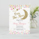 Over the Moon Baby Shower Invitation for girl with a moon, stars, and beautiful faux gold glitter.
