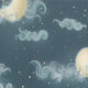 Dreamy depictions of the moon in various phases nestled in swirling clouds.
