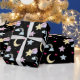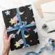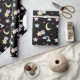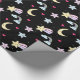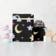 Moon, Stars and Clouds Pattern on Black Wrapping Paper